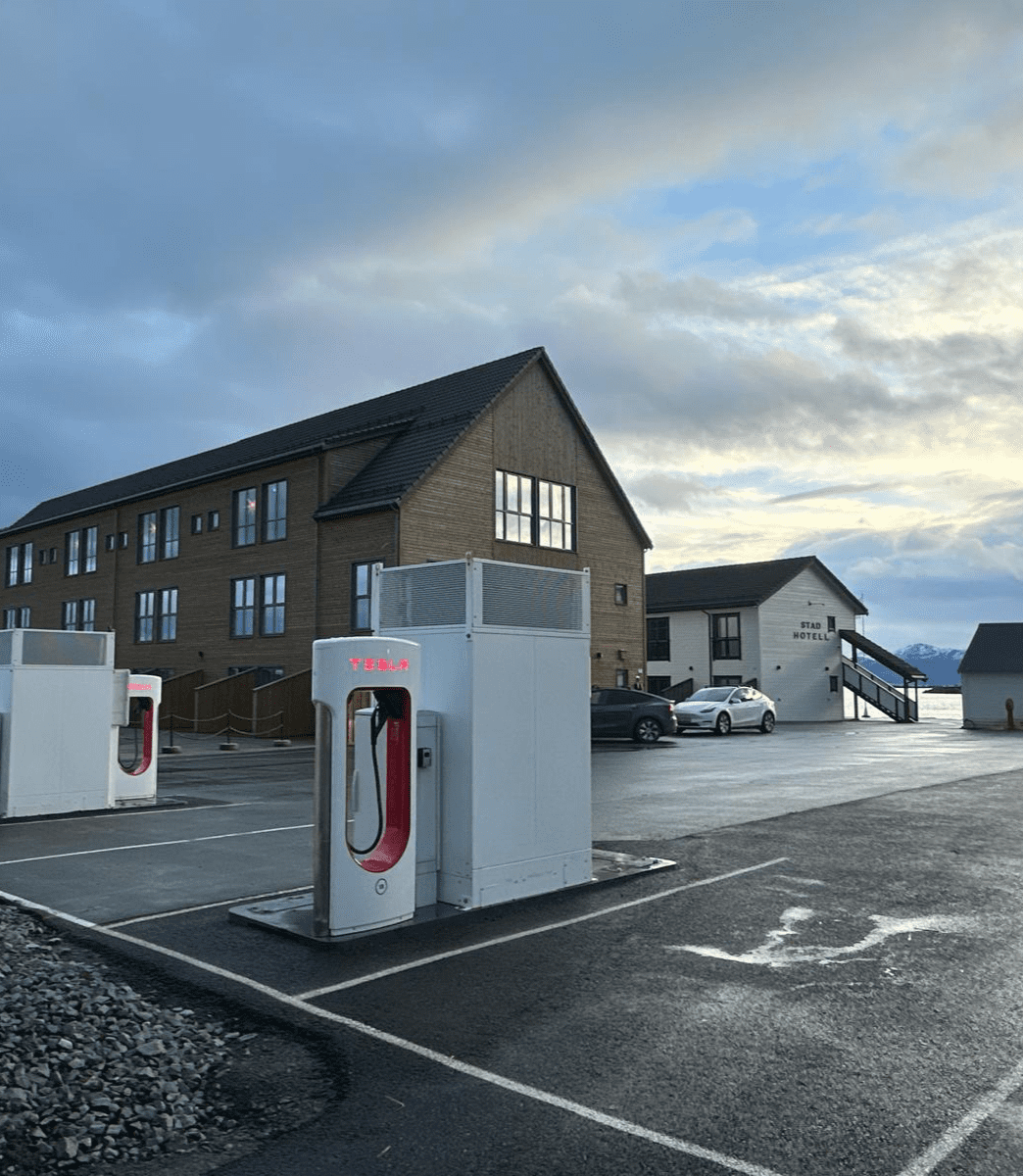 Vi har fått Tesla Superchargers på området – raske, effektive og lett tilgjengelege for alle som besøker oss.