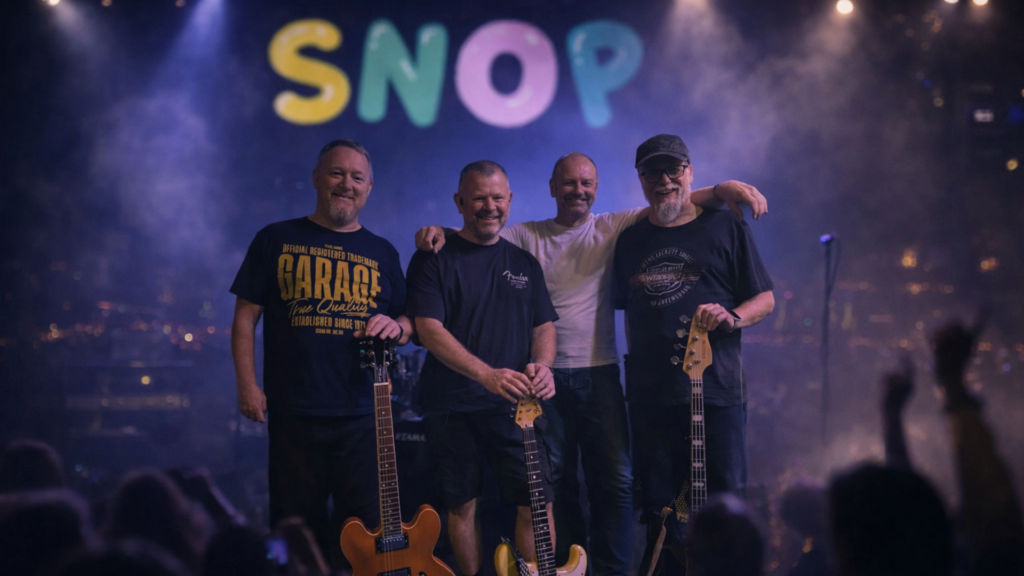 SNOP er eit coverband fra Bergen, som spelar melodiar du får lyst til å danse og synge til. Fire rutinerte ringrevar fra byens harde kjerne spelar opp med kjente og kjære låter fra flere årtier. Settlista består av allsidig og gjenkjennbare melodiar og vi går ikke av vegen for å prøve nokon lokale slagere helder. Låtvalget er med andre ord plukka fra øvste hylle. Medlemmane i SNOP har lang individuell erfaring å sjå tilbake på, og dei passer riktig så godt saman både musikalsk og personleg. Energien fra bandet på scena gir stor smitteeffekt på dei danse og syngeglade tilhørarane. Her får du fire voksne, sprudlande, rutinerte «ungdommar» som sprer rundt seg med speleglede, god energi og godt humør.